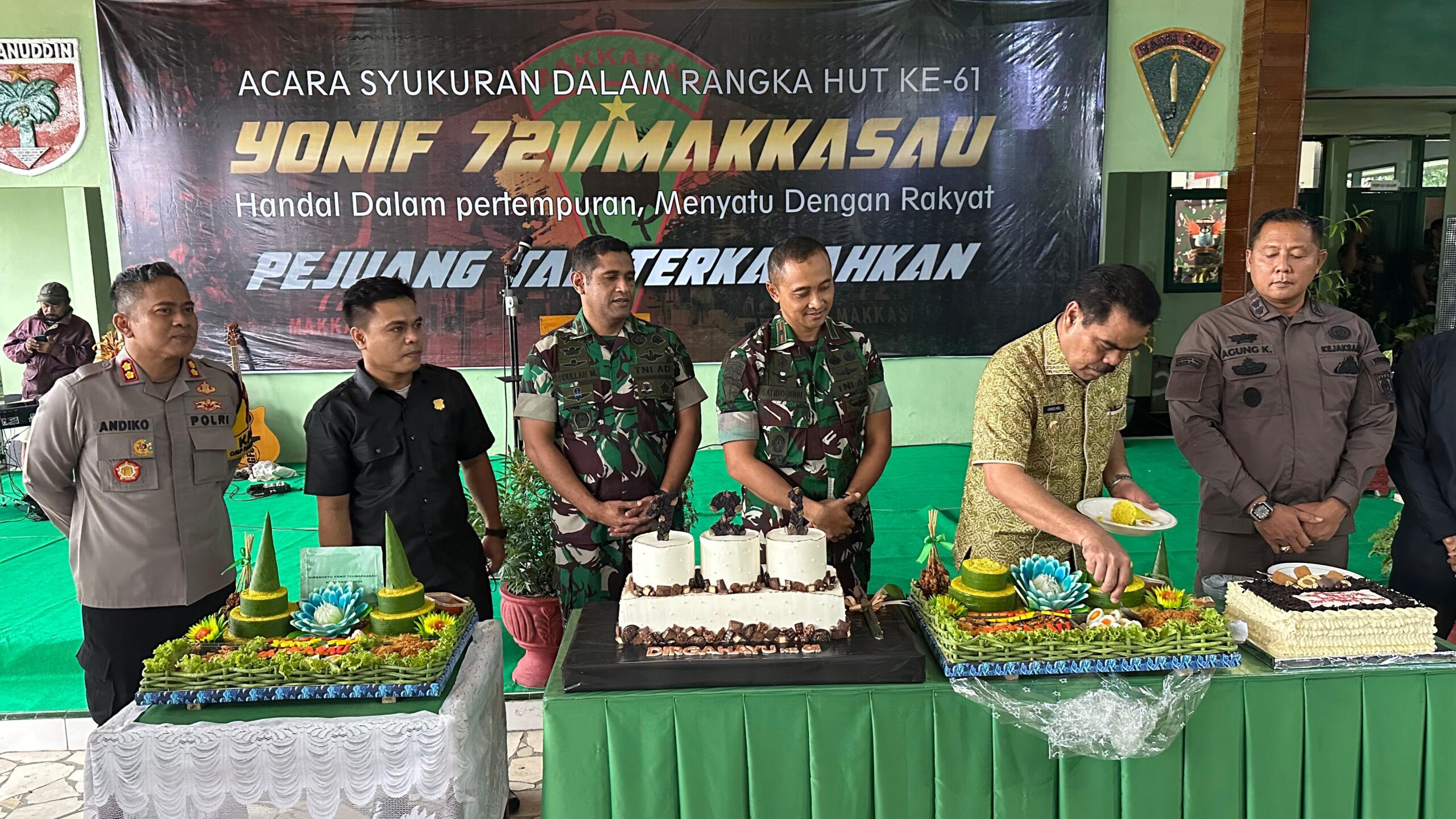 Acara syukuran HUT ke-61 Yonif 721/Mks tidak hanya menjadi momentum untuk mempererat kebersamaan di antara para prajurit, tetapi juga memperkuat sinergi antara TNI, Polri, pemerintah daerah, dan masyarakat.(Red/Hum)