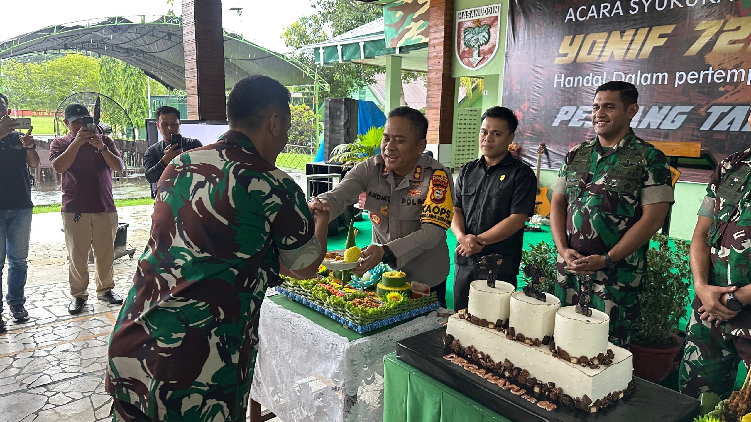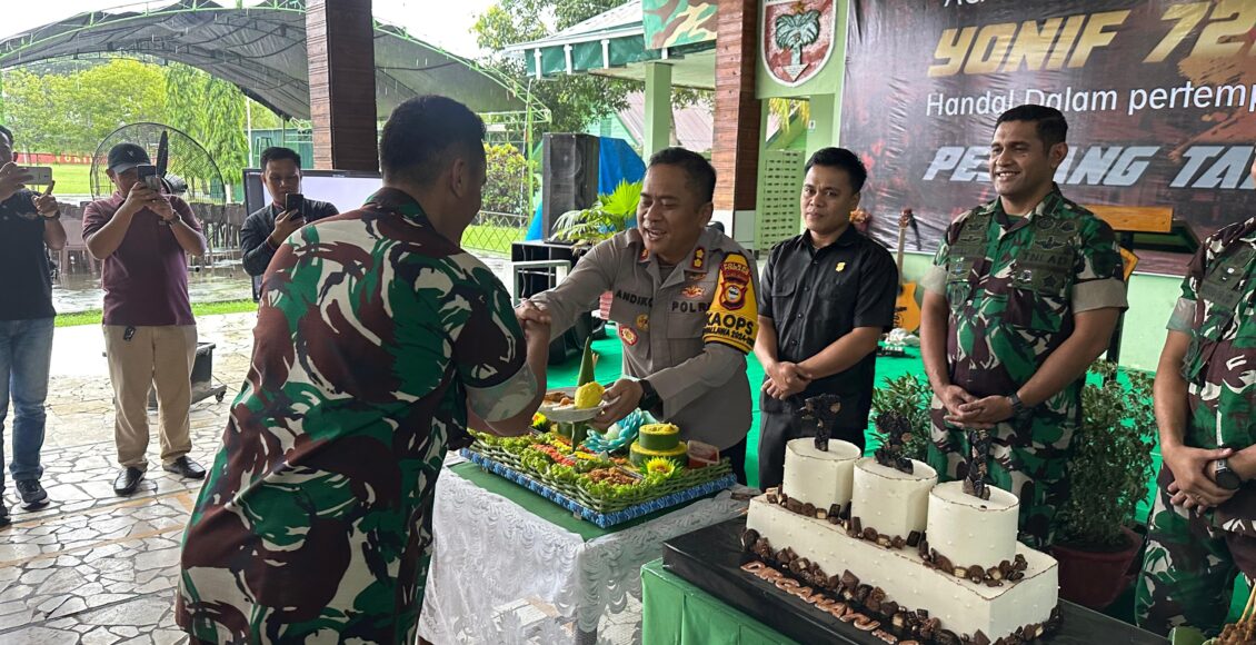 Pinrang,ikagawanews.id – Kapolres Pinrang, AKBP Andiko Wicaksono, S.I.K., menghadiri acara syukuran dalam rangka Hari Ulang Tahun (HUT) ke-61 Batalyon Infanteri (Yonif) 721/Makkasau yang mengusung tema “Handal Dalam Pertempuran, Menyatu Dengan Rakyat – Pejuang Tak Terkalahkan.”
