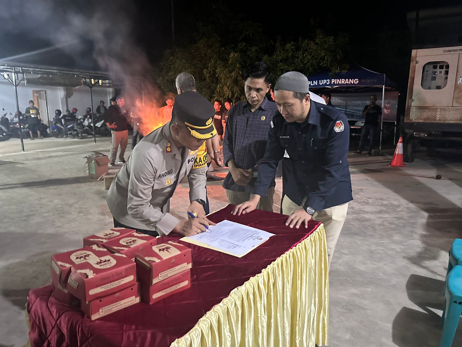 PINRANG,ikagawanews.id – Kapolres Pinrang AKBP Andiko Wicaksono, S.I.K menghadiri pemusnahan kelebihan Surat Suara Pemilu 2024 di Depan Kantor KPU Kab. Pinrang, Selasa (13/02/24) Pukul.22.00 Wita