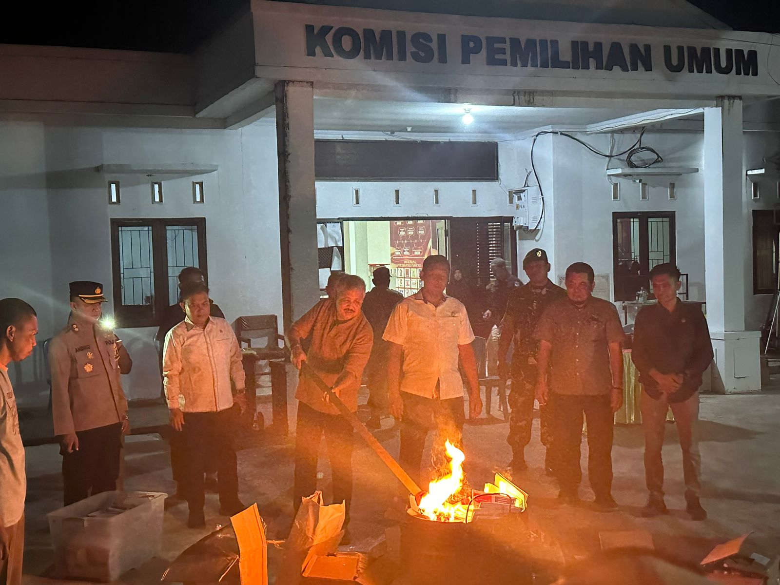 Pemusnahan tersebut dilaksanakan setelah pendistribusian logistik pemilu telah rampung dilaksanakan secara keseluruhan.