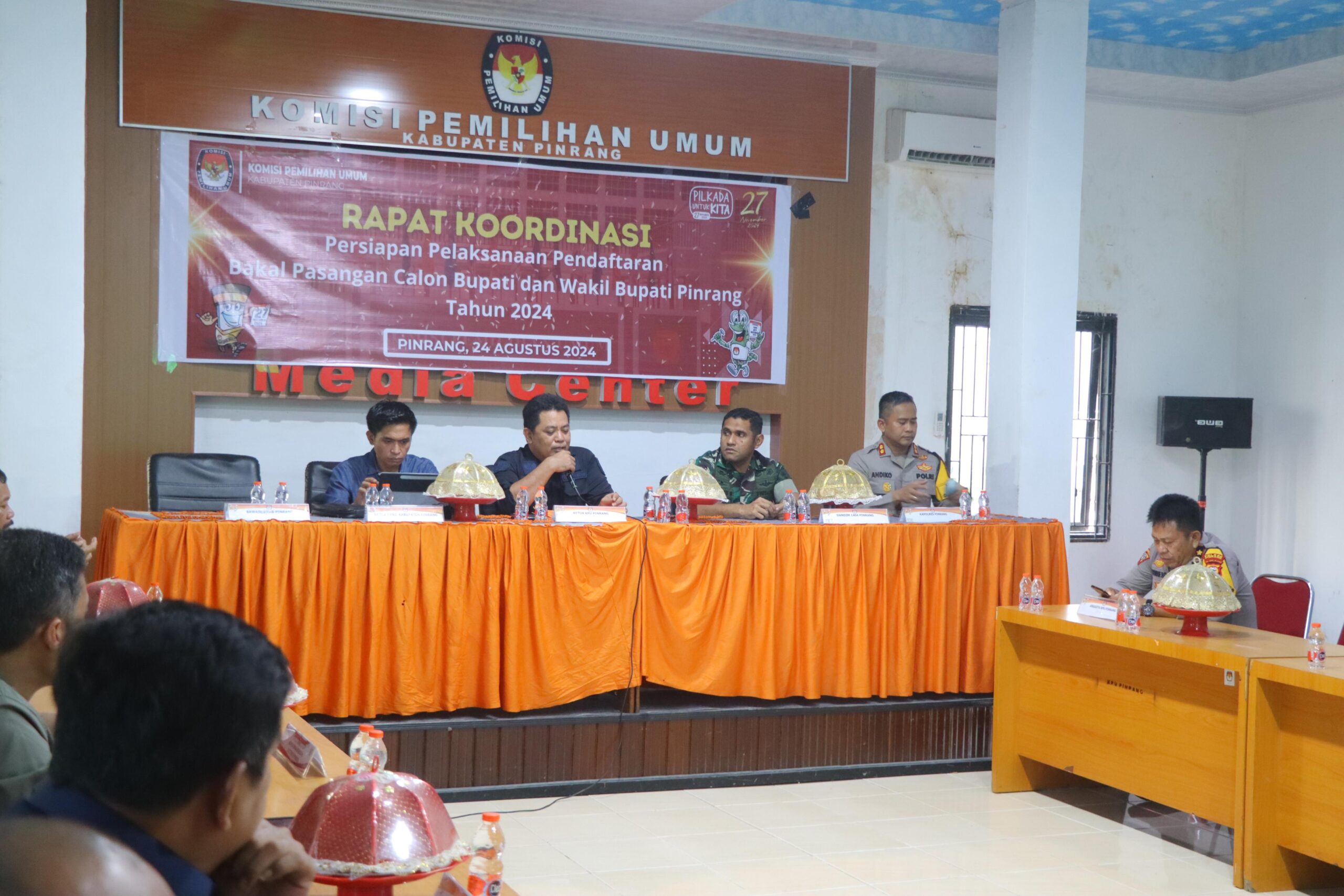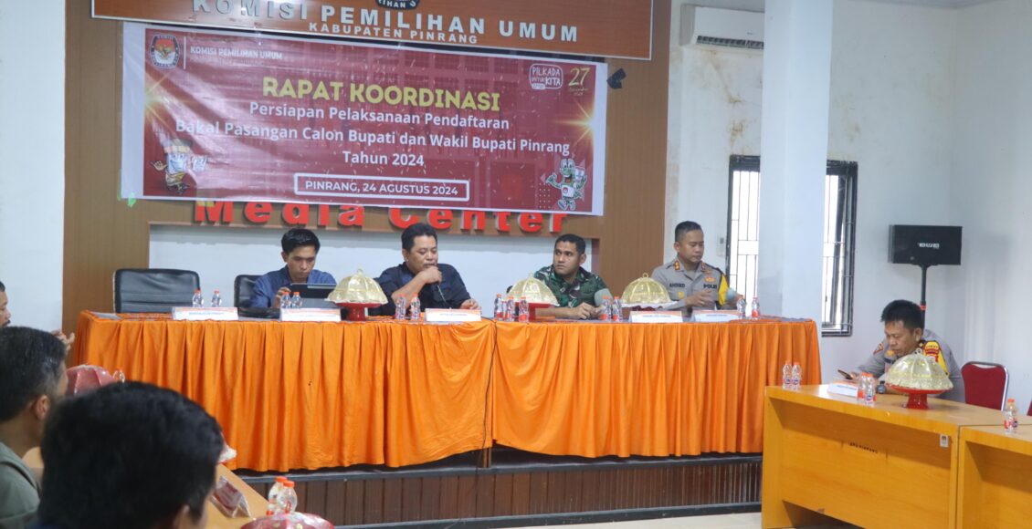 Rapat Koordinasi Persiapan Pelaksanaan Pendaftaran Bakal Pasangan Calon Bupati dan Wakil Bupati Pinrang tahun 2024 selesai pukul 17.00 Wita dalam keadaan aman dan lancar.
