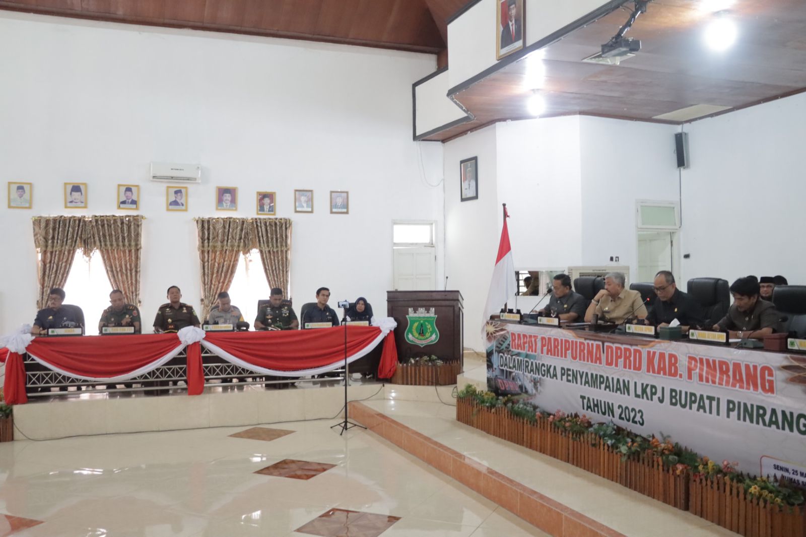 Dalam pengantarnya, Ketua DPRD Kabupaten pinrang H.Muhtadin yang memimpin jalannya rapat Paripurna ini mengungkapkan, Agenda Rapat Paripurna kali ini adalah amanat dari Undang – undang 23 tahun 2014 tentang Pemerintahan Daerah dimana Kepala Daerah Wajib menyampaikan Laporan Penyelenggaraan Pemerintahan Daerah.