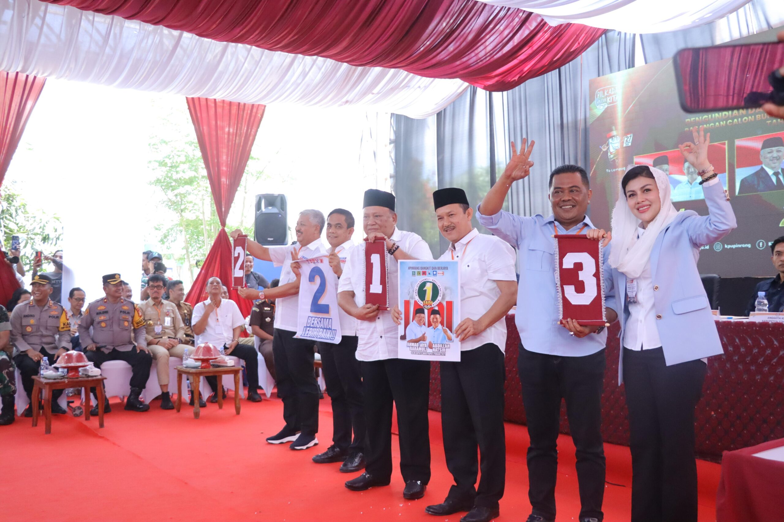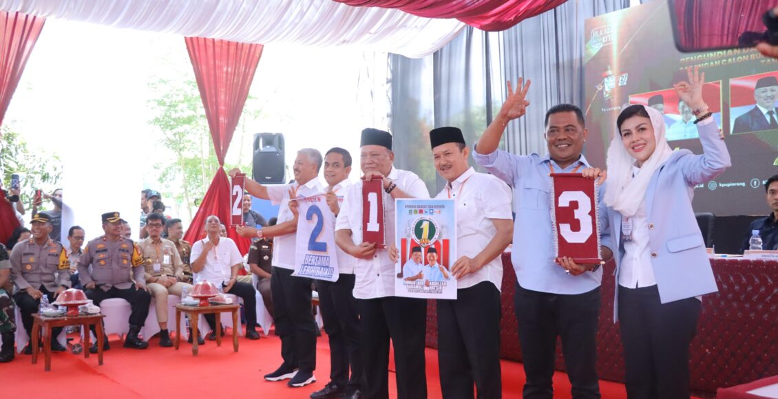 Adapun hasil Pengundian dan Penetapan Nomor Urut Pasangan Calon Bupati dan Wakil Bupati Pinrang tahun 2024 : Nomor Urut 1 Pasangan calon AHMAD JAYA BARAMULI dan Ir. ABDILLAH NATSIR., Nomor Urut 2 Pasangan calon H. A. IRWAN HAMID S.Sos dan SUDIRMAN BUNGI S.IP, M.Si., Nomor Urut 3 Pasangan calon USMAN MARHAM SH, MH dan A. HASTRI T. WELLO.