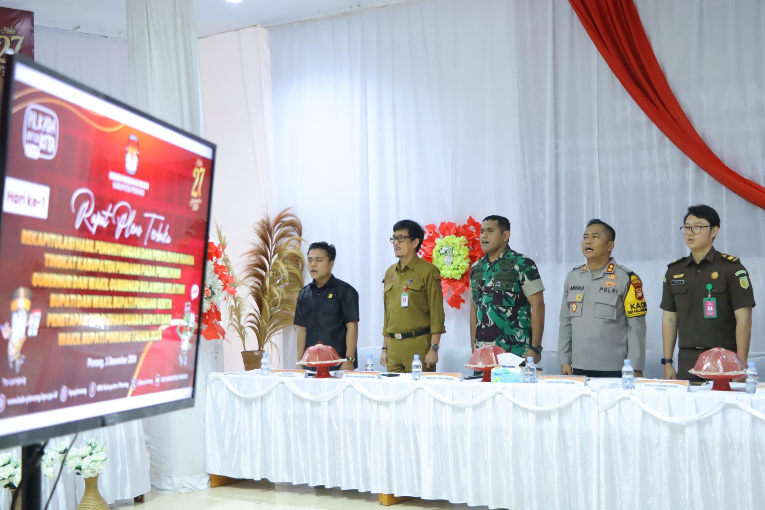 Rapat pleno terbuka tersebut dilaksanakan di Kantor KPU Pinrang , yang dipimpin oleh Ketua KPU Kabupaten Pinrang Muh. Ali Jodding, S.Pd.I, dan dihadiri oleh berbagai pejabat daerah, termasuk Sekda Kabupaten Pinrang, Unsur Forkopimda, komisioner KPU, pimpinan dan komisioner Bawaslu Pinrang,serta saksi dari masing-masing pasangan calon.