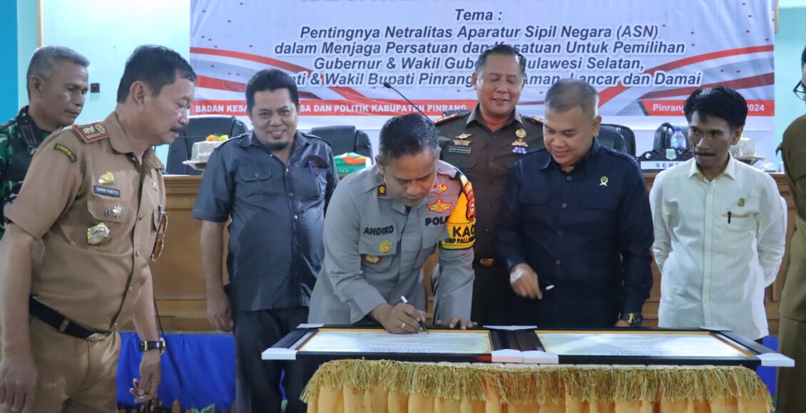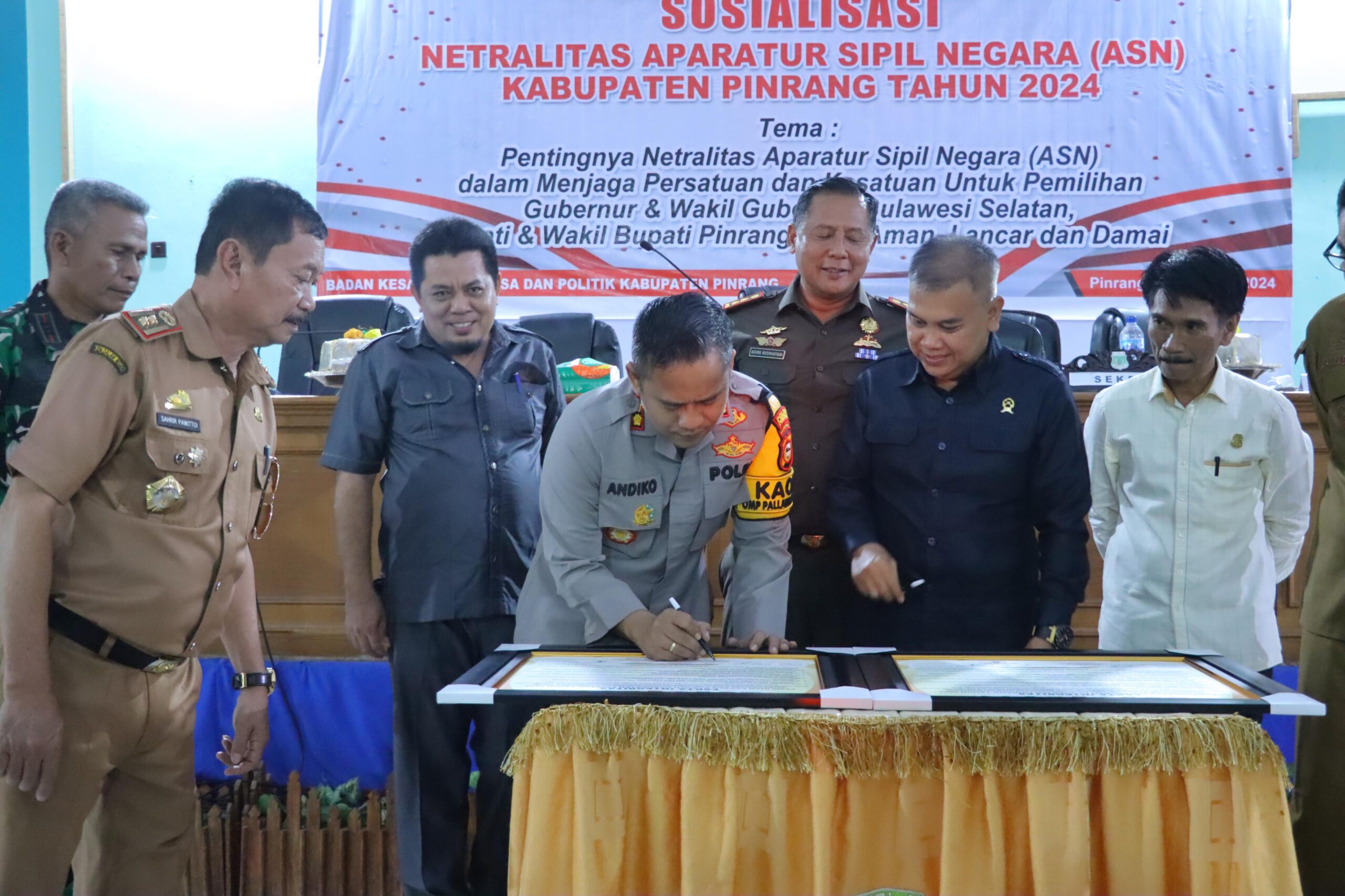 Pinrang,ikagawanews.id – Kapolres Pinrang AKBP Andiko Wicaksono, S.I.K menghadiri Sosialisasi Netralitas Aparatur Sipil Negara (ASN) yang digelar oleh Pemerintah Kabupaten Pinrang melalui Badan Kesatuan Bangsa dan Politik.