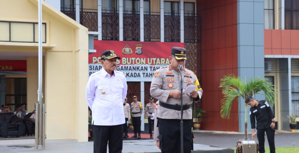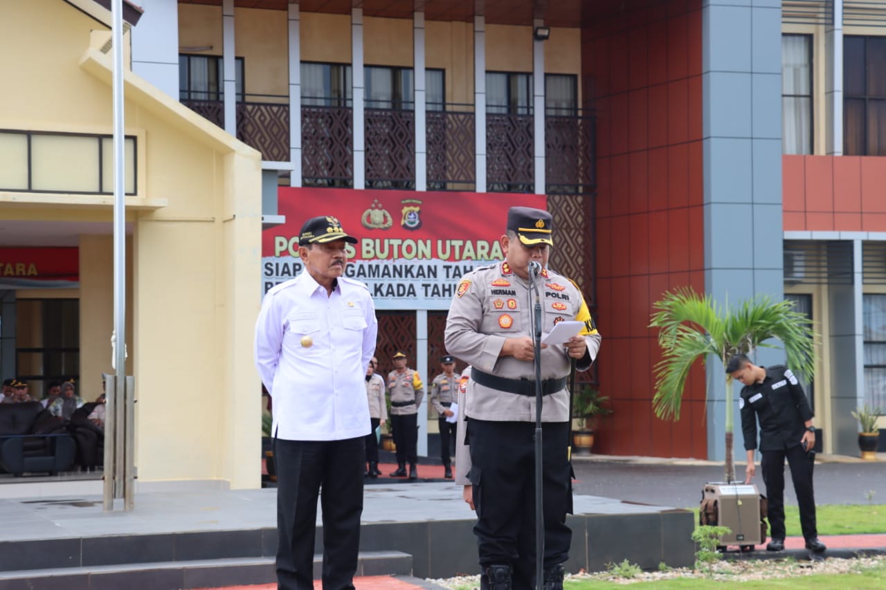 Apel tersebut dipimpin oleh Bupati Buton Utara, Drs. H. Muh. Ridwan Zakariah, yang didampingi oleh Kapolres Butur, A.K.B.P. Herman Setiadi.