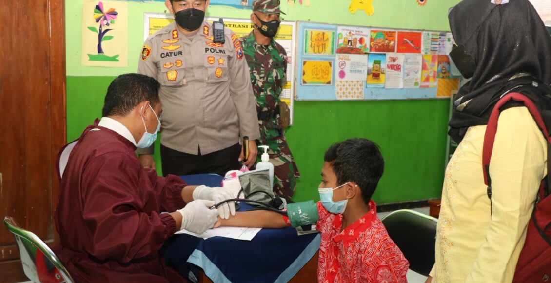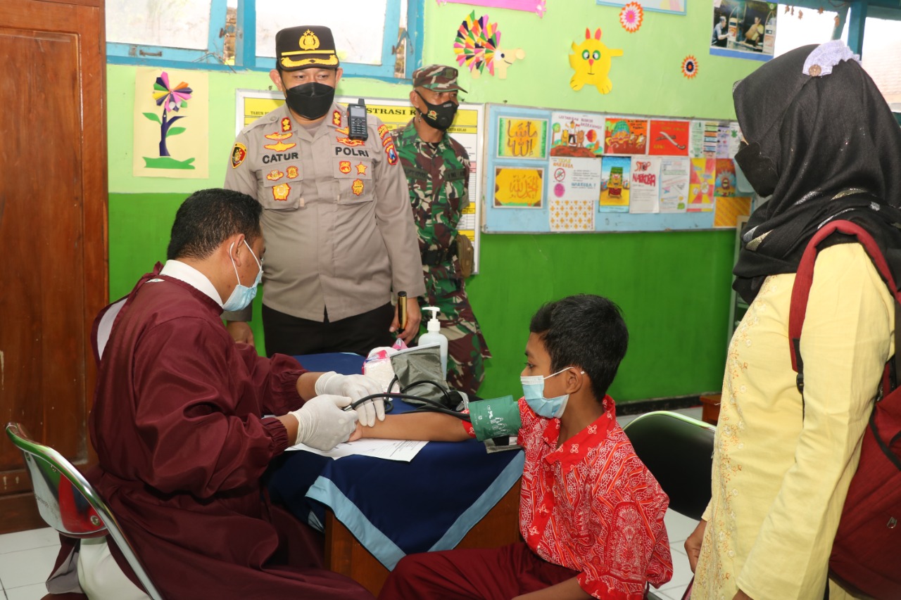 Kapolres Ponorogo AKBP Catur Tinjau Vaksinasi Merdeka Anak Di SDN 1 Pondok Kecamatan Babadan