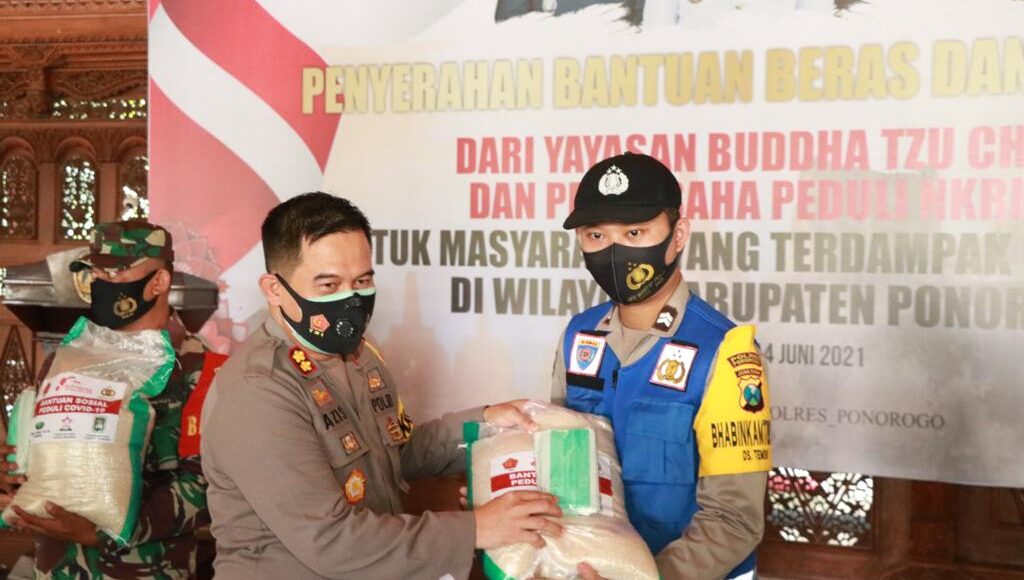 Yayasan Buddha tzu chi, menyerahkan sepenuhnya kepada Polres Ponorogo, Kodim 0802 dan Pemerintah daerah Ponorogo terkait mekanisme penyaluran bantuan beras dan masker kepada warga terdampak covid 19.
