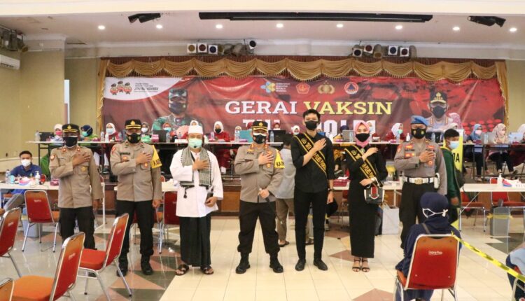 KAPOLRES PONOROGO GANDENG DA’I PROKES DAN KAKANG SENDUK SAAT MENINJAU GERAI VAKSIN TNI/POLRI