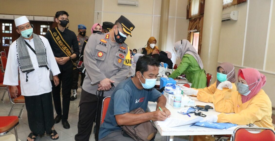 PONOROGO,IKAGAWANEWS.ID  – Kapolres Ponorogo AKBP Mochamad Nur Azis, S.H., S.I.K., M.Si Pimpin langsung kegiatan peninjauan pelaksanaan Vaksinasi Massal Dosis 2 di Gerai Vaksin TNI – Polri bertempat di Kecamatan Kauman Somoroto dan Gedung Sasana Praja Ponorogo. Sabtu (24/07/2021)