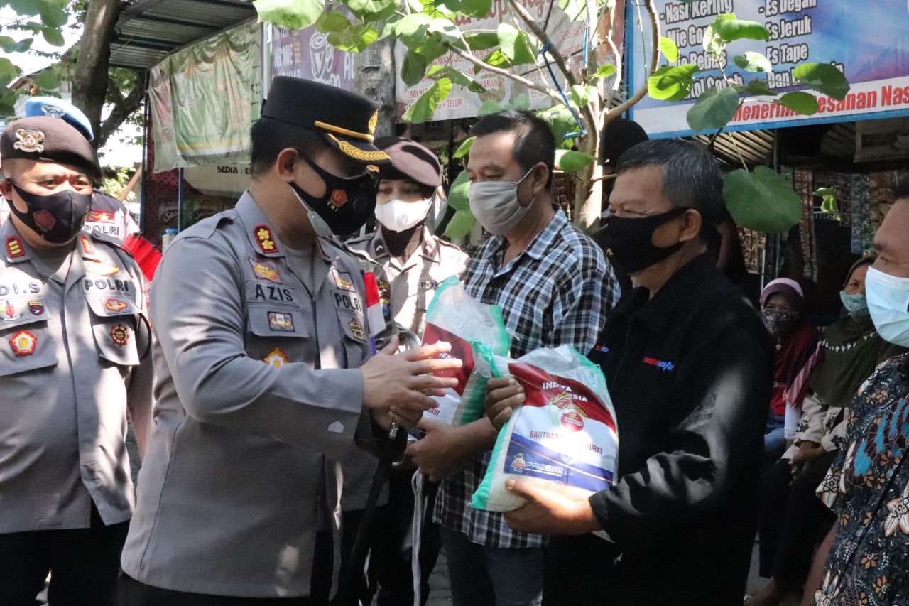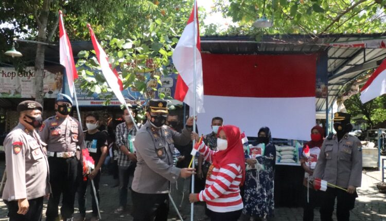 Kapolres Ponorogo Laksanakan Glorifikasi Bendera Merah Putih Dan Penyerahan Bansos Ke Pedagang Kaki Lima