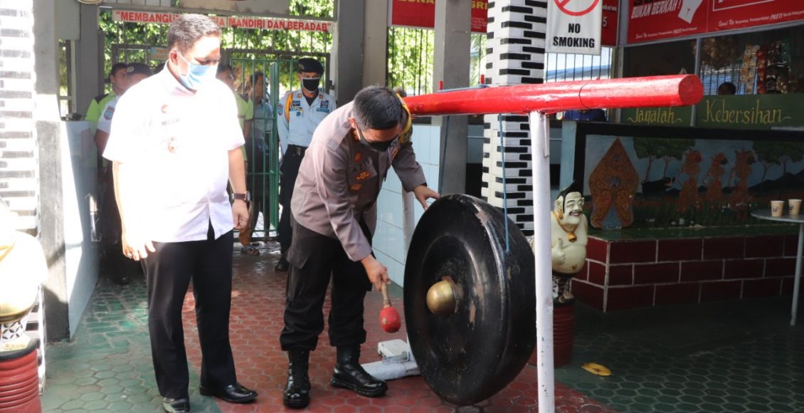 Launching Rutan Tangguh di Lapas kelas II B Ponorogo yang ditandai oleh Pemukulan Gong oleh Kapolres Ponorogo yang menandakan Launching Rutan Tangguh 2020.dan pemberian Masker dan Soft Drink dari Kapolres Ponorogo untuk Rutan Kelas II B Ponorogo dalam rangka HUT Bhayangkara ke 74 yang diterima langsung kepala Rutan Kelas II B Ponorogo Arya Galung., Amd.IP., S.H yang dilanjutkan Peninjauan Posko Rutan Tangguh Semeru oleh Kapolres Ponorogo.(Tnt/Hum)