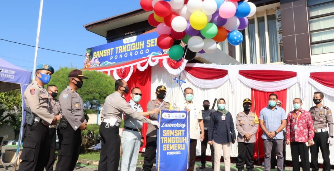 Polres Ponorogo melaunching kantor perpanjangan STNK dan pelayanan SIM menjadi Samsat dan Satpas Tangguh Semeru, Hal itu, untuk memastikan kenyamanan dan keamanan pemohon pelayanan di era New Normal dalam situasi Pandemi Covid-19 saat ini.