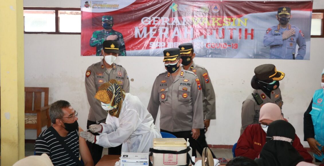 Ponorogo,IKAGAWANEWS.ID – Kapolres Ponorogo AKBP Moch Nur Azis SH.,SIK.,MSi.,beserta jajaran Polres Ponorogo melaksanakan kegiatan pengecekan gerai vaksin TNI Polri Merah Putih bagi warga masyarakat di Aula Mapolres Ponorogo kemudian di wilayah Kecamatan Pulung dan bertempat di Mapolsek Pulung,Kecamatan Babadan dan bertempat di Balai Desa Japan dan terakhir di Kecamatan Sukorejo dan bertempat di Mapolsek Sukorejo. Sabtu ( 21/08/2021 )