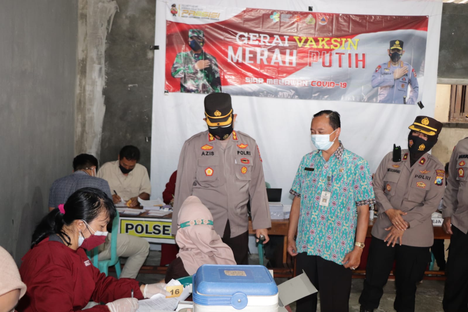 Saat memantau jalannya kegiatan, Kapolres menyempatkan diri untuk berbincang dengan warga yang mengikuti vaksinasi. Kapolres berpesan, meskipun sudah divaksin agar warga tetap disiplin protokol kesehatan. “Meskipun sudah divaksin, namun kita harus tetap disiplin protokol kesehatan,” kata AKBP Azis.