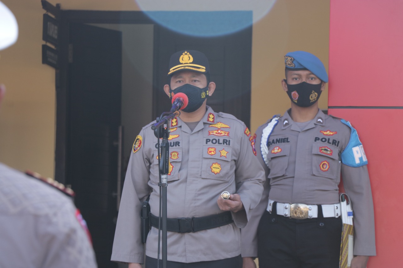 Apel digelar di halaman Mapolres dan dipimpin langsung oleh Kapolres Ponorogo AKBP Catur C. Wibowo SIK.,MH,.