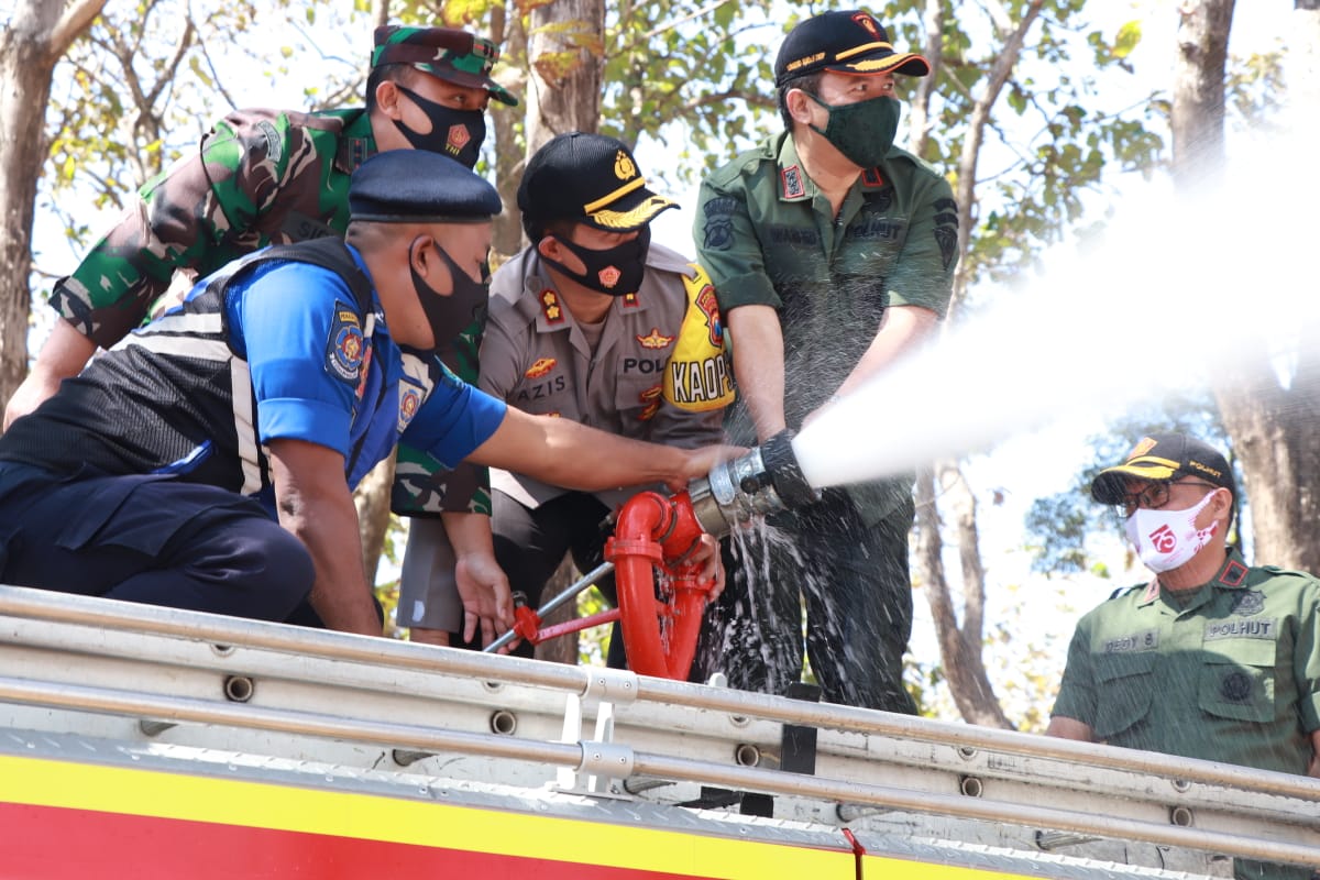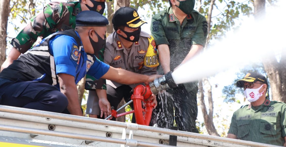 PONOROGO,IKAGAWANEWS.ID – Kapolres Ponorogo AKBP. Mochamad Nur Azis, S.H., S.I.K., M.Si pimpin Apel Kesiapsiagaan dan simulasi penanganan bencana kebakaran hutan dan lahan di wilayah Kabupaten Ponorogo di masa pandemi Covid-19, bertempat di Petak 74 RPH Dsn Setonggo Ds./Kec. Pulung Kabupaten Ponorogo. (Sabtu/22/08)