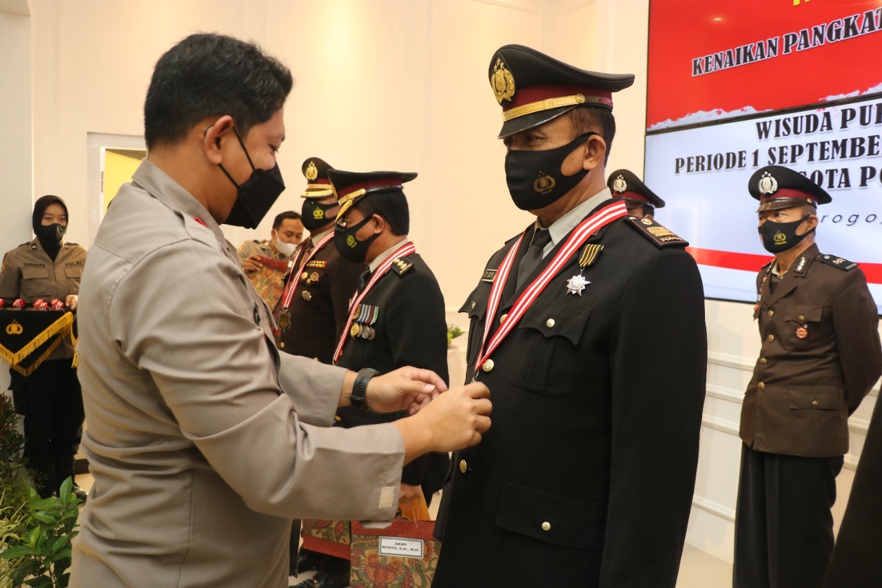 Sebanyak 102 anggota Polres Ponorogo yang diusulkan untuk naik pangkat secara keseluruhan dapat naik 100% ditambah 10 anggota polres yang memasuki purna tugas.