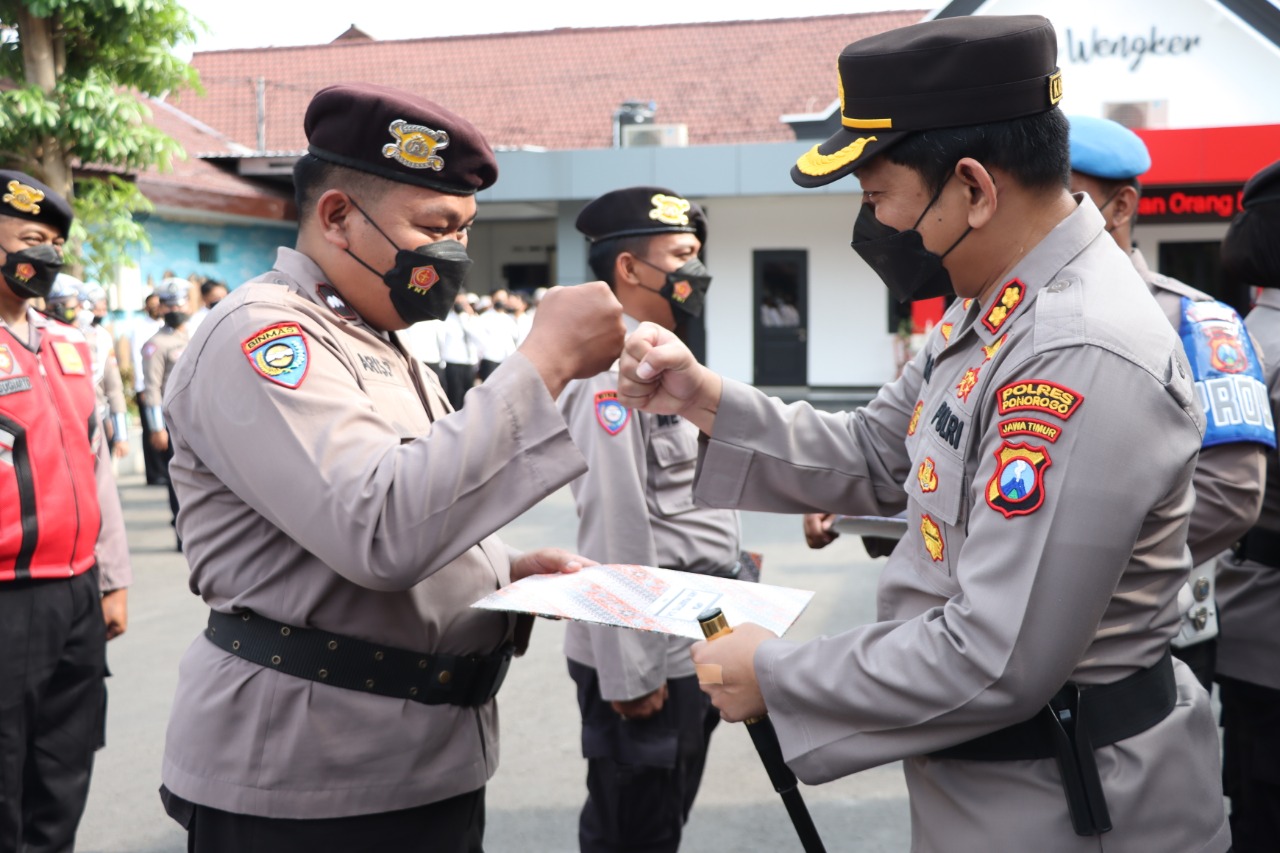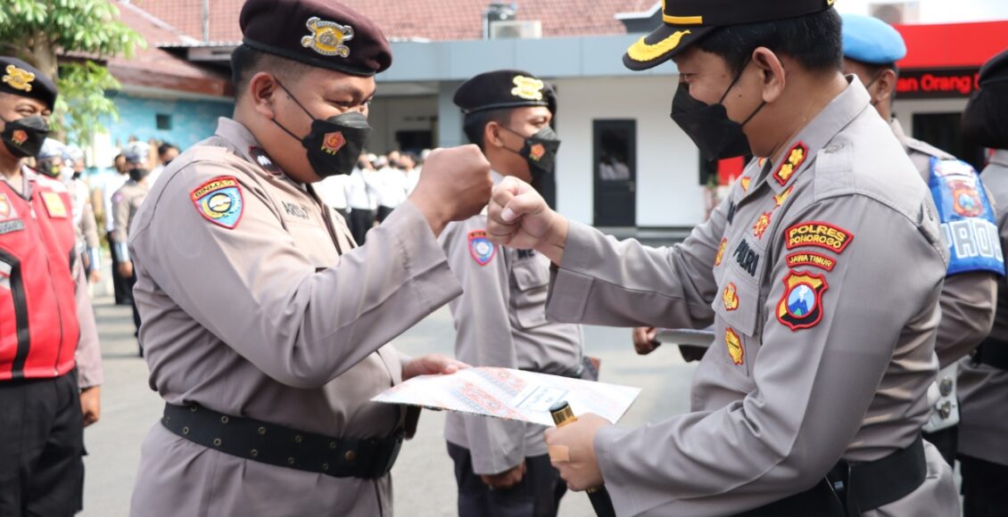 Kapolres Ponorogo Pimpin Upacara Kenaikan Pangkat Pengabdian Sekaligus Berikan Penghargaan Kepada Anggota Berprestasi