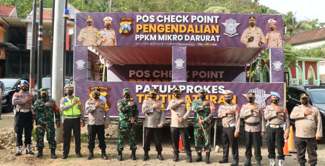 Ponorogo,IKAGAWANEWS.ID – Di hari ke enam belas PPKM Darurat, Kapolres Ponorogo bersama Dandim 0802 dan PJU turun langsung melaksanakan pengecekan di Pos Penyekatan Wilayah Kecamatan Sawoo yang berbatasan Kabupaten Kabupaten Trenggalek, Minggu (18/7/2021).