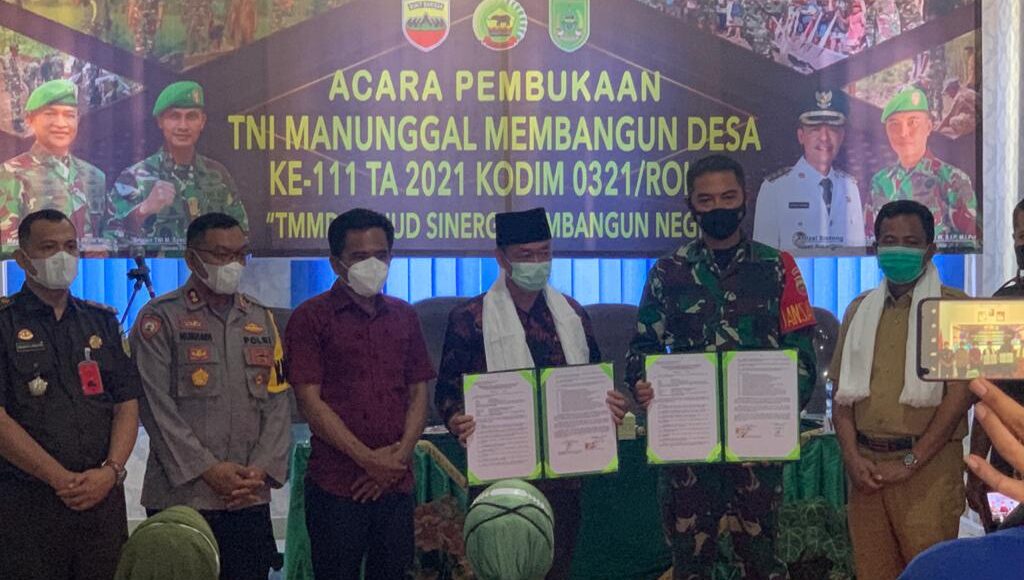 ROHIL,IKAGAWANEWS.ID – Kapolres Rohil AKBP Nurhadi Ismanto,S.H. S.I.K. dan jajarannya Kapolsek Bagan Sinembah KOMPOL Indra Lukman Prabowo,S.H.S.I.K., hadiri acara pembukaan TNI Manunggal Membangun Desa ke-111 T.A. 2021 Kodim 0321 Rokan Hilir yang bertema “TMMD Wujud Sinergi Membangun Negeri.