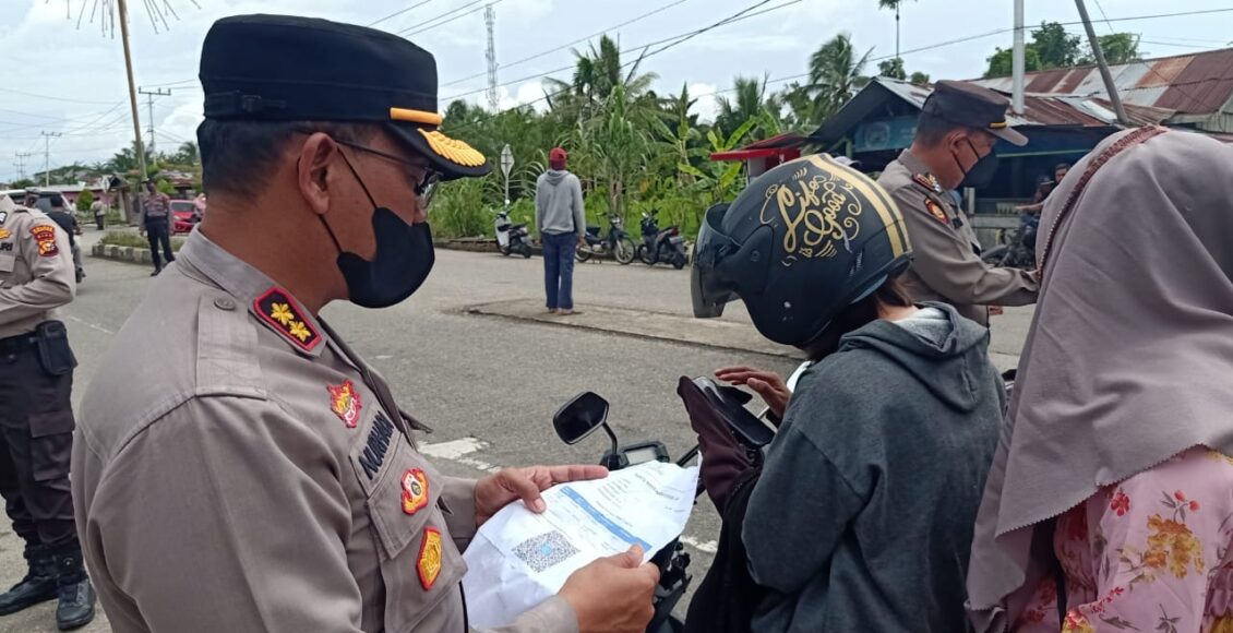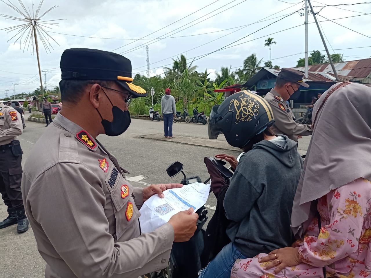 dalam kegiatan ini Terlihat Kapolres rohil turun langsung memberhentikan dan menanyakan langsung kepada setiap pengendara yang melintasi pos penyekatan, satu persatu,kapolres rokan hilir juga memberikan himbauan penting nya melaksanakan vaksinasi kepada pengendara yang melintas.