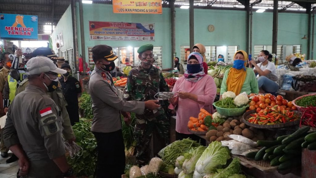 “Kita Bagikan 400 Masker di Pasar Bandarjo kemudian 340 Masker di Pasar Babadan dan Masing masing di jajaran Polsek Sebanyak 100 Masker diwlayah Kabupaten Semarang” Ujar AKBP Ari Wibowo.