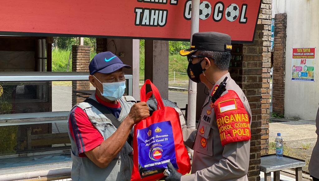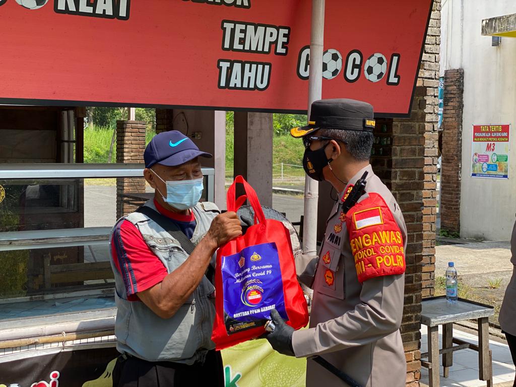 Semarang,IKAGAWANEWS.ID – Kapolres Semarang AKBP Ari Wibowo,SIK,M.H, didampingi Waka Polres Semarang Kompol Sigit Ari Wibowo,SH dan PJU Polres Semarang,Rabu 21/7/2021 kembali membagikan bansos kepada PKL di Alun alun Kalirejo, sebanyak 50 paket sembako.