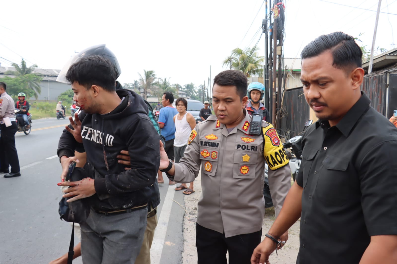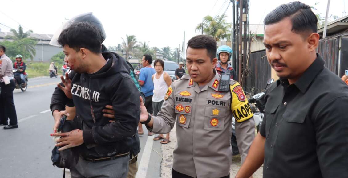 “Korban pengendara motor mengalami luka terbuka pada bagian mulut dan sudah mendapatkan pertolongan di klinik modern. Kasus kecelakaan sudah ditangani Unit Gakkum,” jelasnya