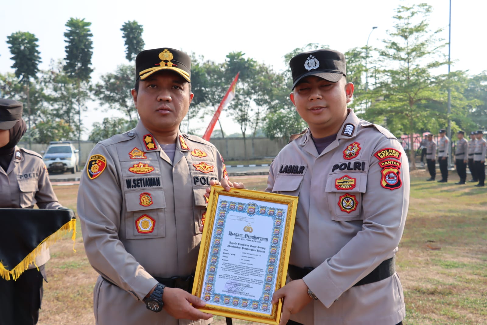 Kapolres Serang Pimpin Upacara Kenaikan Pangkat Pengabdian dan Penghargaan Personel Polres Serang
