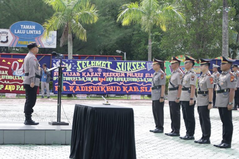 SIAK,ikagawanews.id – Kepala Kepolisian Resor (Kapolres) Siak AKBP Asep Sujarwadi pimpin upacara Serah terima jabatan Kasat dan Kapolsek serta penyerahan jabatan Kasi Propam di Lapangan Apel Polres Siak, Senin (27/5/2024) pagi.