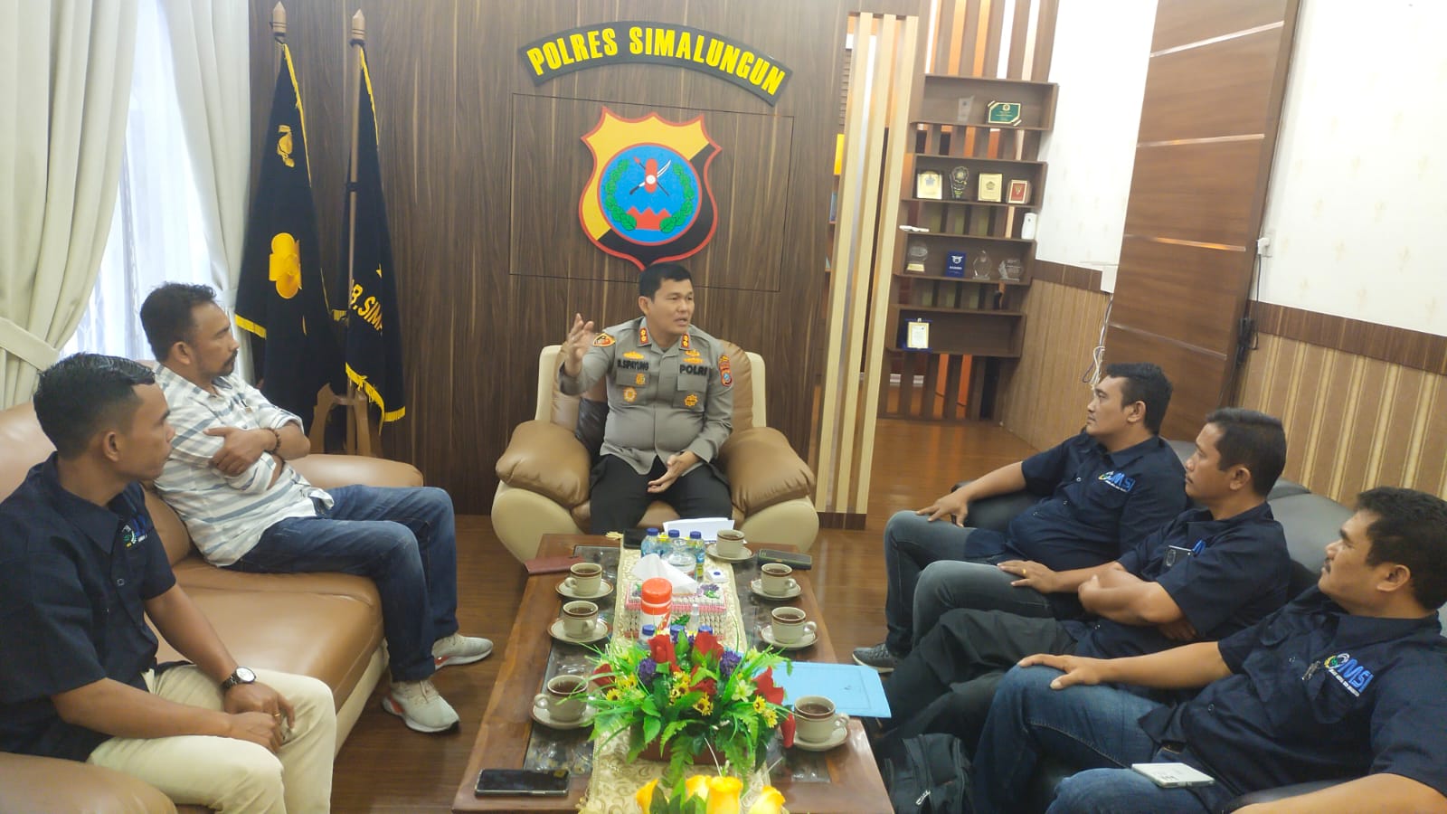 Kapolres Simalungun AKBP Ronald FC Sipayung menerima audensi pengurus dan panitia pelantikan JMSI Pematang Siantar-Simalungun