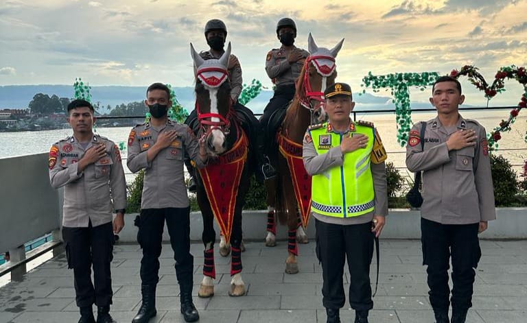 “Personel Unit Satwa Dit Samapta Polda Sumatera Utara melaksanakan Patroli berkuda di Kawasan Pariwisata Danau Toba Parapat ini dalam rangka menjaga situasi keamanan dan ketertiban tetap terjaga, sehingga parawisatawan yang datang berkunjung dapat merasa aman dan nyaman selama berada di Parapat ini.