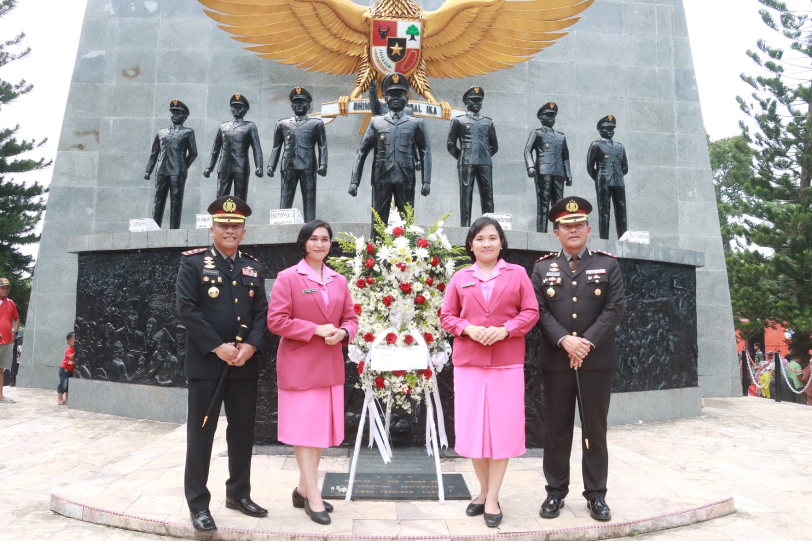 Kapolres Simalungun AKBP Ronald F.C Sipayung, S.H., S.I.K., M.H., yang didampingi dengan Ketua Bhayangkari Cabang Simalungun Ny. Erika Ronald Sipayung menyampaikan kegiatan upacara kesaktian pancasila merupakan bentuk cinta kepada tanah air Indonesia.