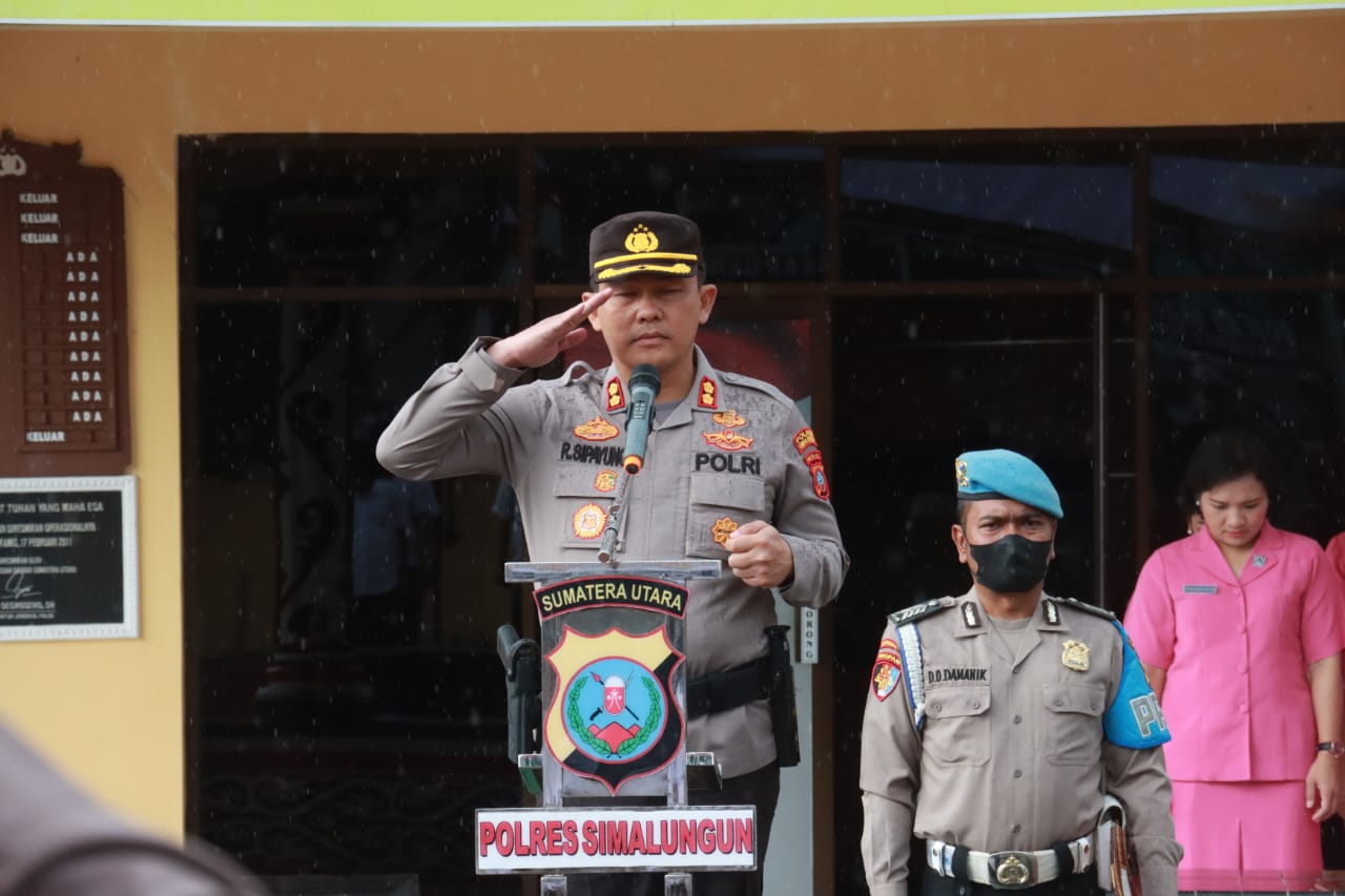 Upacara ini dipimpin secara langsung oleh Kapolres Simalungun AKBP Ronald F.C Sipayung, S.H., S.I.K., M.H., bersama dengan para pejabat senior dan jajaran dari Polres Simalungun.