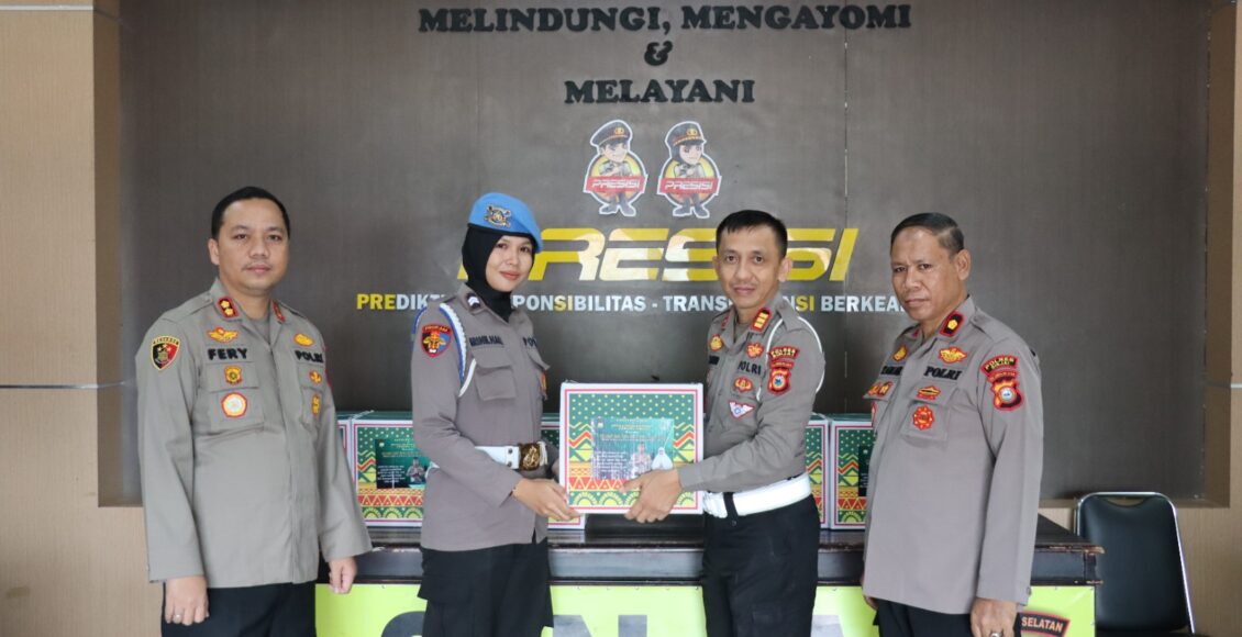 SINJAI,ikagawanews.id – Kepala Kepolisian Resor Sinjai, Ajun Komisaris Besar Polisi (Akbp) Fery Nur Abdulah, S.Ik secara simbolis memberikan bingkisan paket hari raya Idul fitri 1445 H kepada personel Polres Sinjai, Senin pagi (1/4/2024).