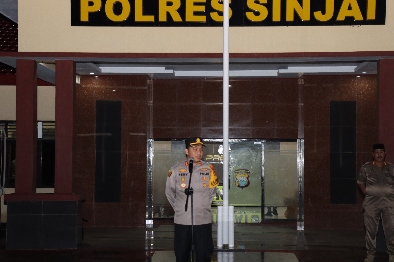 Kapolres Sinjai dalam arahannya yang intinya menyampaikan bahwa malam ini kita fokus pengamanan dalam rangka mengantisipasi gangguan Kamtibmas dimalam takbiran.