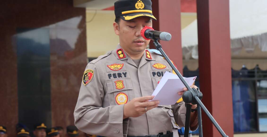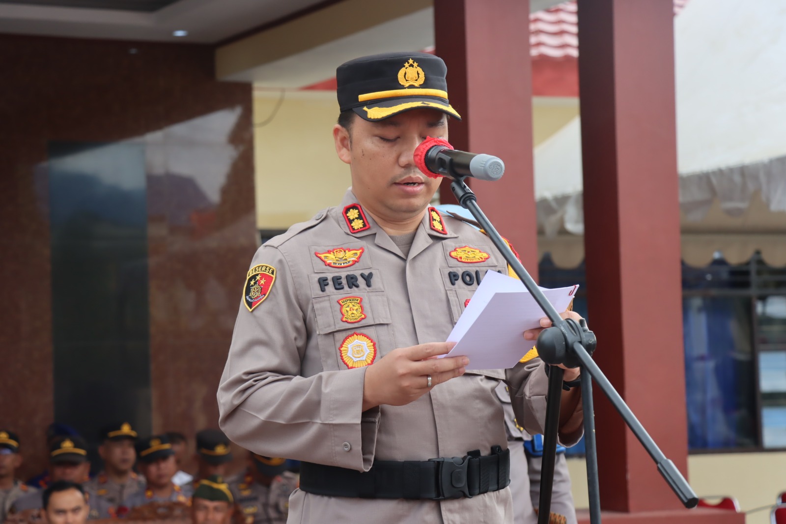 Kapolres Sinjai membacakan amanat seragam Kapolri Jenderal Polisi Drs. Listyo Sigit Prabowo, M.Si yang menyampaikan bahwa