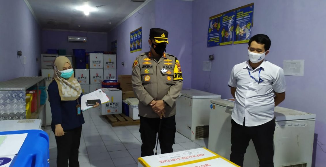 Selanjutnya, Kapolres Sukabumi dan rangkaian kendaraan pengangkut vaksin sinovac tiba di gudang farmasi Dinkes Cibadak dan vaksin yang berjumlah 11.000 vial diterima petugas gudang serta langsung di simpan di gudang penyimpanan khusus vaksin.