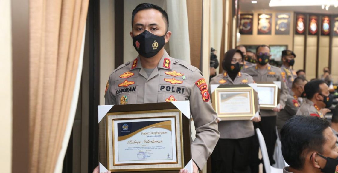SUKABUMI,IKAGAWANEWS.ID – Kepala Kepolisian Resort (Kapolres) Sukabumi Akbp M. Lukman Syarif S.IK., M.H . di tetapkan oleh Kementrian Keuangan RI sebagai Polres terbaik 1 Se Indonesia dalam katagori Capaian Nilai Indikator Kinerja Pelaksanaan Anggaran TA. 2020 Katagori Satuan Kerja Pagu Besar (di atas 75 M) pada lingkup Polri,di Rupatama Mabes Polri Jl. Trunojoyo Jakarta, Senin 5 April 2021.