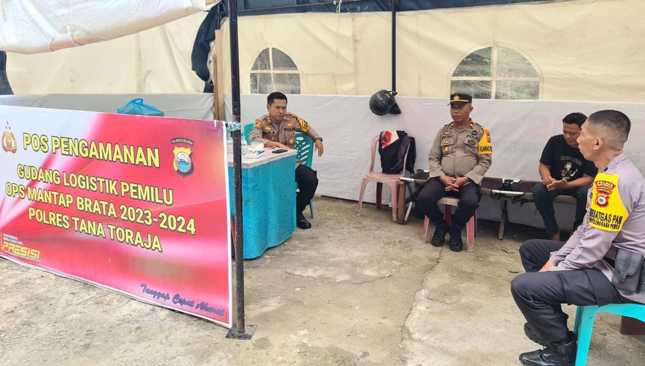 TANA TORAJA,ikagawanews.id – Kapolres Tana Toraja AKBP Malpa malacoppo, mengecek pos pengamanan dan gudang penyimpanan logistik KPUD di jalan Pongtiku Kelurahan Pantan Kecamatan Makale Kabupaten Tana Toraja, Sabtu (20/1/24)