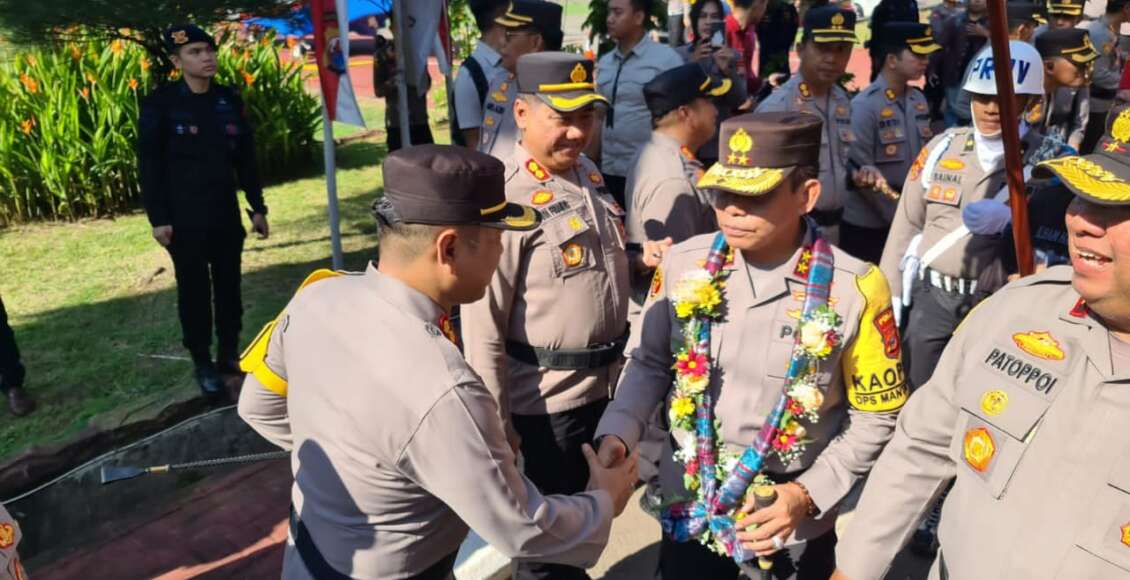 Kapolres Tana Toraja Menghadiri Penyambutan dan Pelepasan Pejabat Lama dan Pejabat Baru Kapolda Sulsel