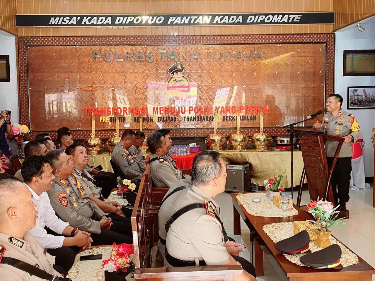 Kegiatan dilanjutkan dengan acara pisah sambut dan perkenalan di Lobi Polres Tana Toraja.(Red/Hum)