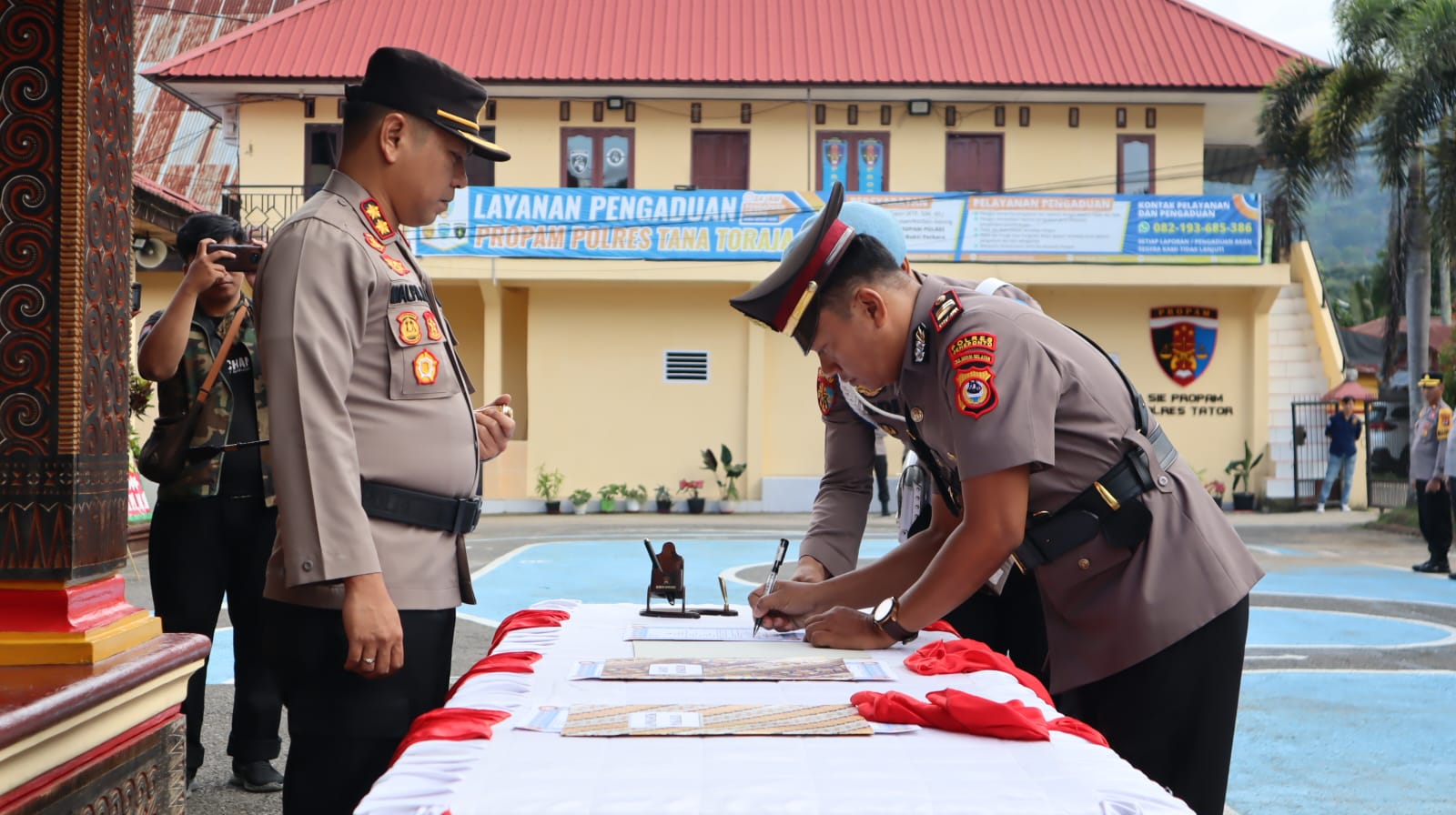 “Saat ini kita dalama Bulan Suci Ramadhan dan menjelang hari raya idul fitri tahun 2024, tentunya menjadi tantangan tugas kita kedepan dalam meningkatkan layanan keamanan kepada masyarakat, olehnya itu Kepada Pejabat baru agar segera menyesuaikan dan melaksanakan tugas sesuai prosedur” Harap Kapolres Tana Toraja