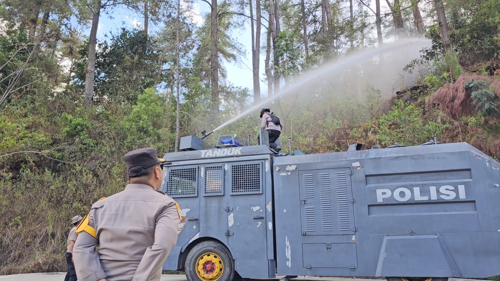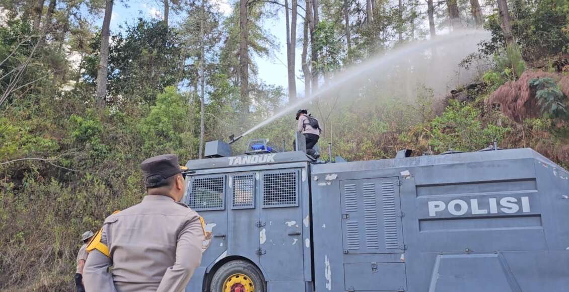 “Hari ini adalah hari kedua terjadinya kebakaran hutan di wilayah Kecamatan Mengkendek, olehnya itu kami menggerakkan seluruh tim termasuk Personil gabungan Polres dan Polsek untuk menyisir lokasi kebakaran yang masih terdapat titik asap dengan menggunakan kendaraan water cannon, Damkar dan BPBD Tana Toraja” Jelas AKBP Malpa