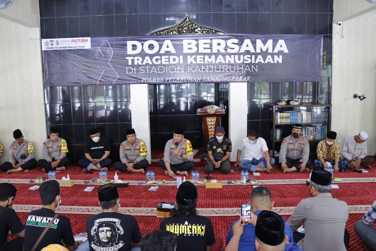Surabaya ,ikagawanews.id – Kapolres Pelabuhan Tanjung Perak Surabaya, melaksanakan kegiatan doa untuk korban tragedi stadion Kanjuruhan Malang bersama Bonek Republik Surabaya Utara.