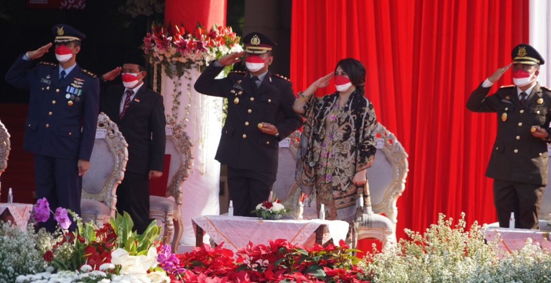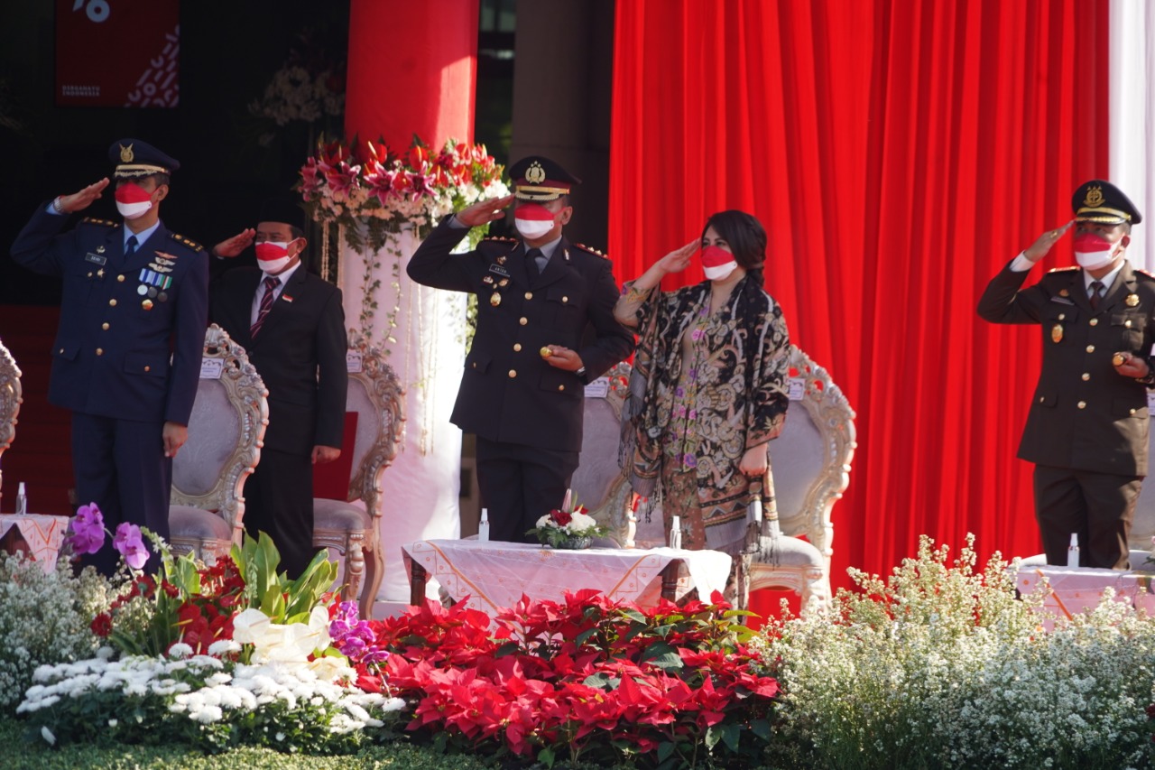 Untuk mendukung pencegahan Covid-19, upacara kali ini sengaja dilakukan sangat terbatas. Hanya diikuti sekitar 30 undangan yang terdiri dari jajaran Forkopimda dan pasukan upacara.