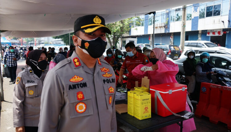 SURABAYA,IKAGAWANEWS.ID – Kapolres Pelabuhan Tanjung Perak, AKBP Anton Elfrino Trisanto, SH, S.I.K, M.Si, memantau jalanya vaksinasi yang digelar di depan Mapolres, Jalan Kalianget, Sabtu, 28 Agustus 2021.