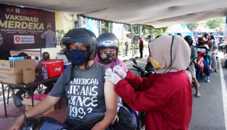 Diterangkan Kapolres Pelabuhan Tanjung Perak, kegiatan Vaksinasi Merdeka ini dilaksanakan serentak seluruh Indonesia sebagai upaya pemerintah mempercepat penanganan Pandemi Covid-19.