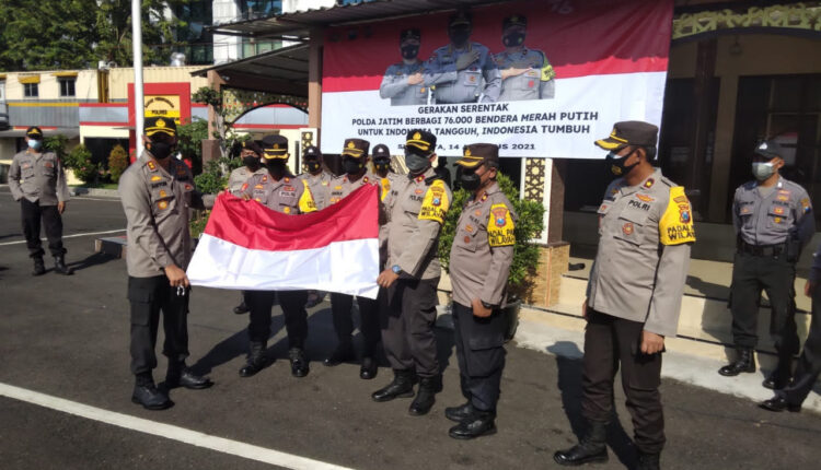 Kegiatan yang digelar usai apel jam pimpinan pada pukul 08.30 ini merupakan bagian dari pelaksanaan Gerakan Serentak Pembagian 76 ribu bendera Merah Putih di wilayah Polda Jatim.
